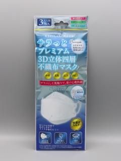 サラッとプレミアム3D立体四層不織布マスク3枚入 大人用個包装