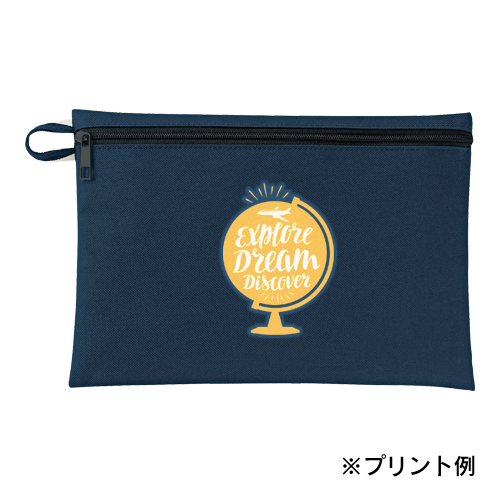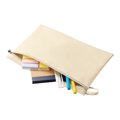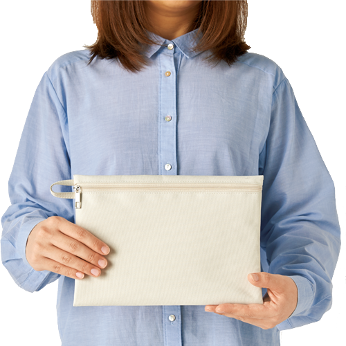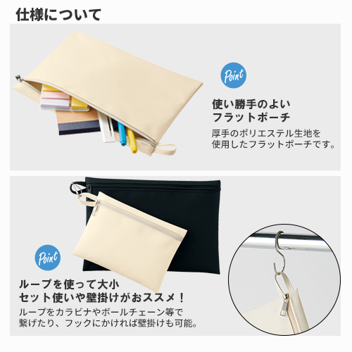 厚手のポリエステル生地を使用したフラットポーチです。フラットタイプのスタンダードな形状となっており、性別問わずにお使い頂くことができます。
