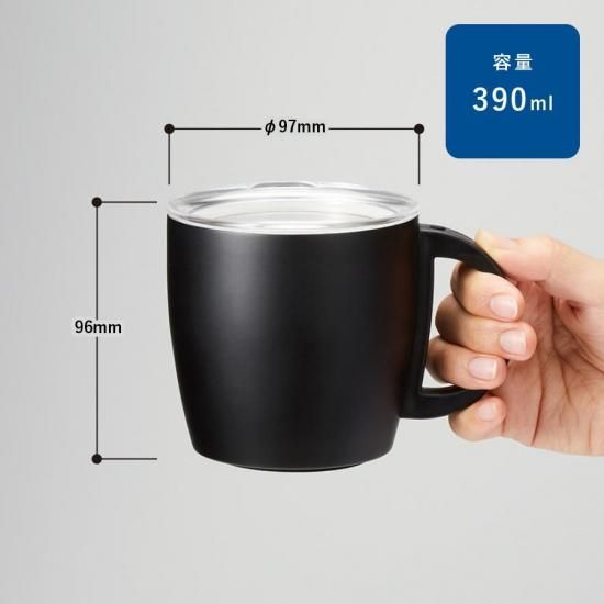 フタ付のマグは中の飲み物の温度が変化しづらく、ほこりが入るのを防ぐため、屋外でも、屋内でも使えるアイテムです。
