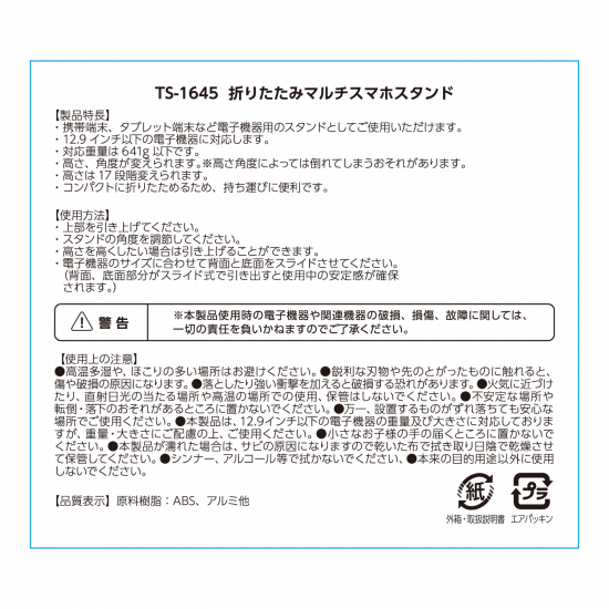 [MARKLESS STYLE] TS-1645 折りたたみマルチスマホスタンド