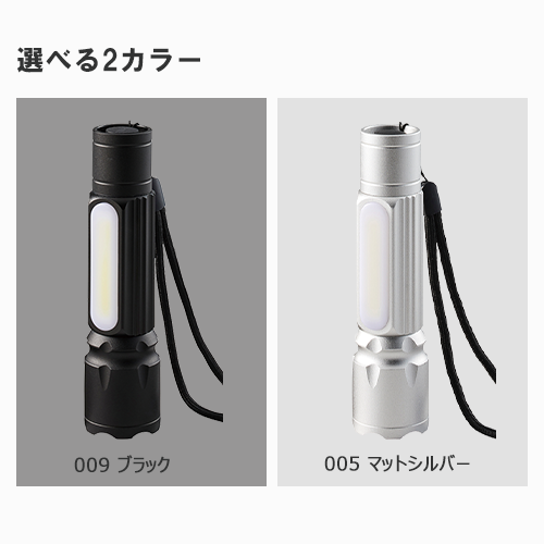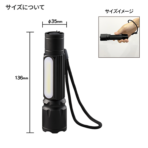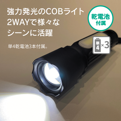 強力発光のCOBライトを使用した2WAYの懐中電灯です。