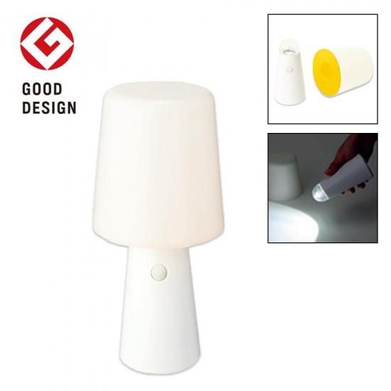 空間に馴染みやすいインテリア照明としての形状と、災害時の懐中電灯としての機能をシンプルに両立させたデザイン。