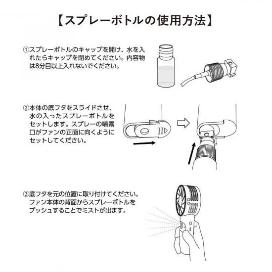 静音タイプ、風量もあるファンにスプレーボトルが付属しているミストファンです。
