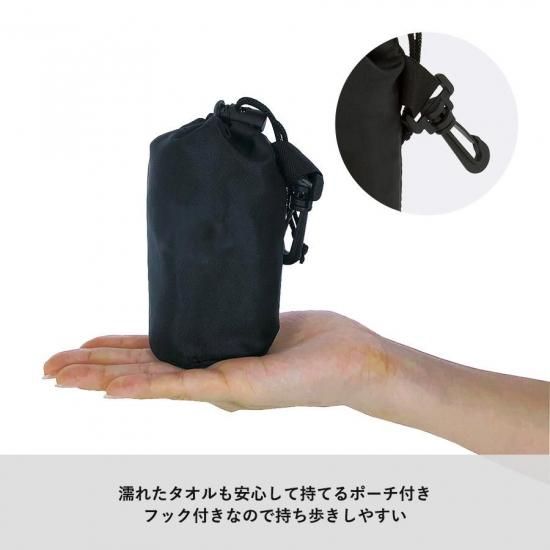 使用後のタオルは付属の巾着に収納し、コンパクトに持ち歩きできます。
