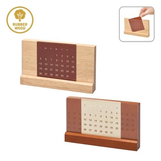 おしゃれな雑貨として人気の万年カレンダーに、廃材を再利用したラバーウッド素材の商品が登場しました。