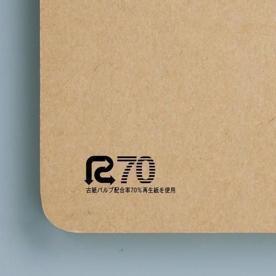 R70マークを取得しており、古紙パルプ配合率70%の再生紙を使用している商品です。