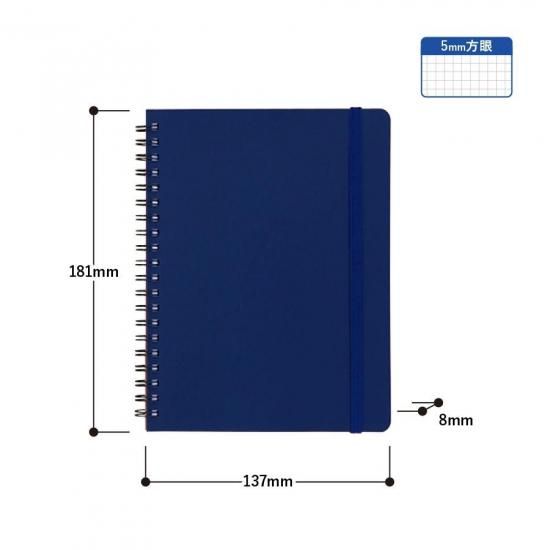 多目的に使いやすい、ゴムバンド付き5mm方眼ノートです。