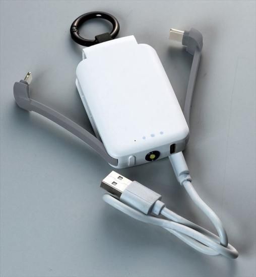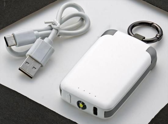 再生利用したABS樹脂を使用。スマホの電池切れで困ったときに持っていると便利。暗がりで助かるライトも搭載。