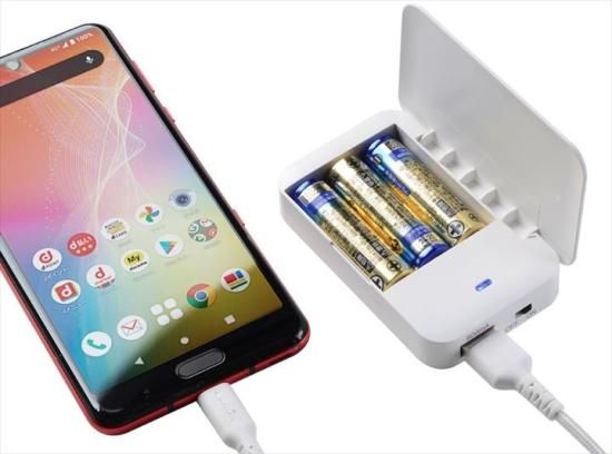 乾電池さえあればすぐにスマホに充電可能。非常時の備えとして用意しておきたい。