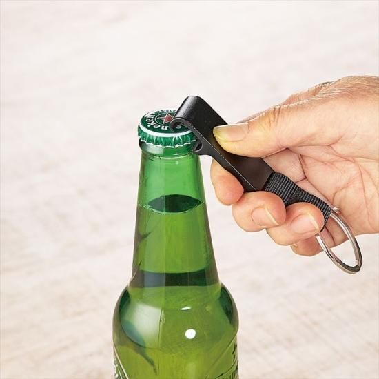 スマホスタンド・栓抜きとして使えるキーホルダー。