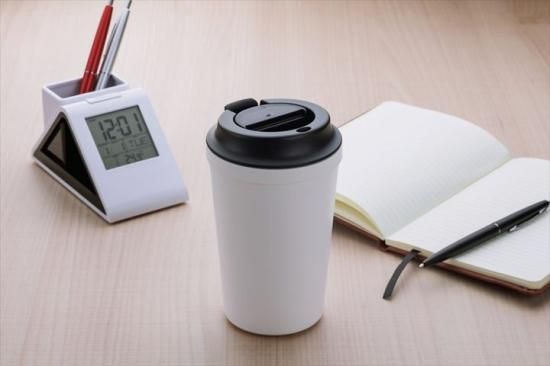 デスクワークでひと息つくときは横から押しても倒れないカップが安心。
