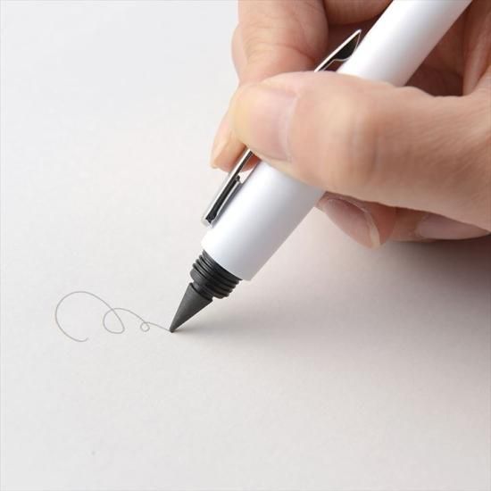 鉛筆 ・ボールペン ・ タッチペン ・ 消しゴムの4機能搭載。また普通の木製鉛筆より約150倍の長さを書けるエコで便利な商品です。