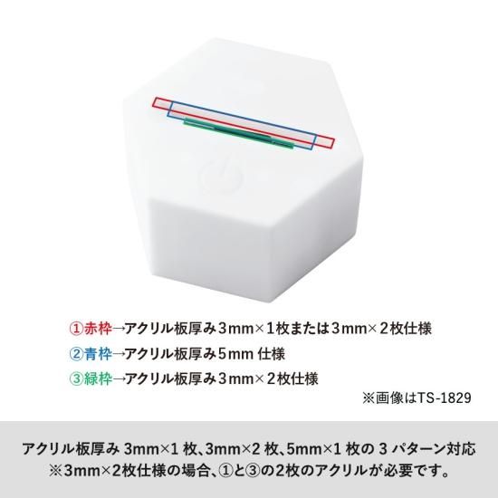 アクリルの差込口が・3mm厚・5mm厚・3mm厚×2枚の3パターンが入る仕様になっており複数パターンのアクリルを差し込み可能です。
