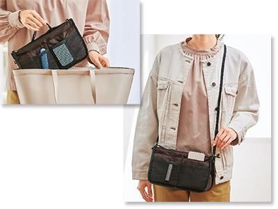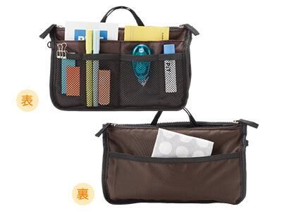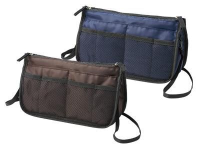 表・裏・中にもポケットがいっぱいで、仕分けに便利なバッグインバッグ。ストラップ付きでショルダーバッグとしても使えます。収納力抜群で鞄の中がスッキリ!旅行や出張にも便利です。