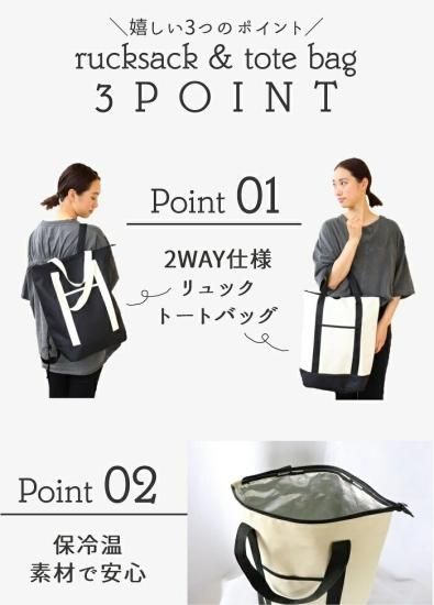 保冷温 リュック トートバッグ 2WAY シンプル / 2色展開(ブラック・ホワイト)