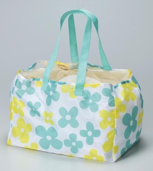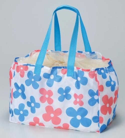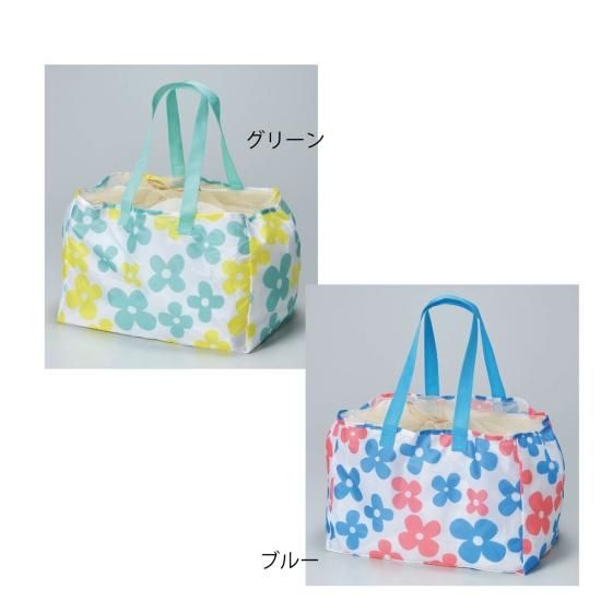 フラワー柄お買い物バッグ/2色展開(ブルー・グリーン)