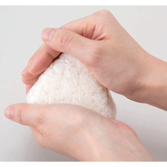 シートの角を使えば、三角おにぎりが簡単にできます。