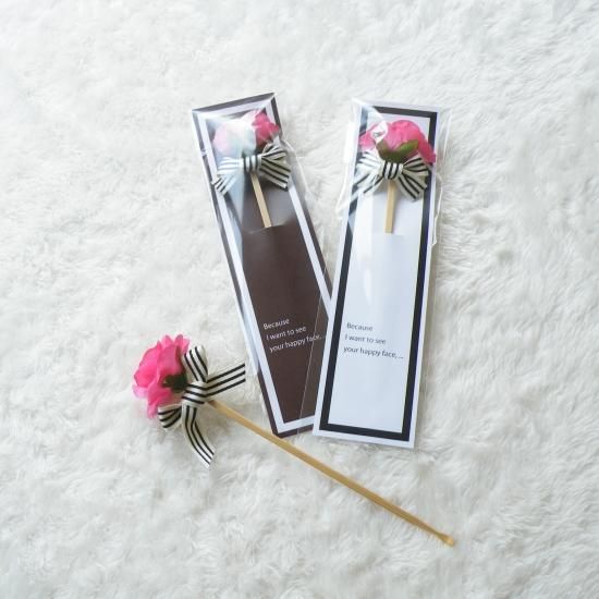 艶やかなピンクのローズにストライプのリボンがフェミニンです。