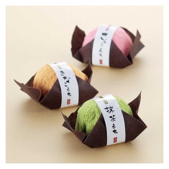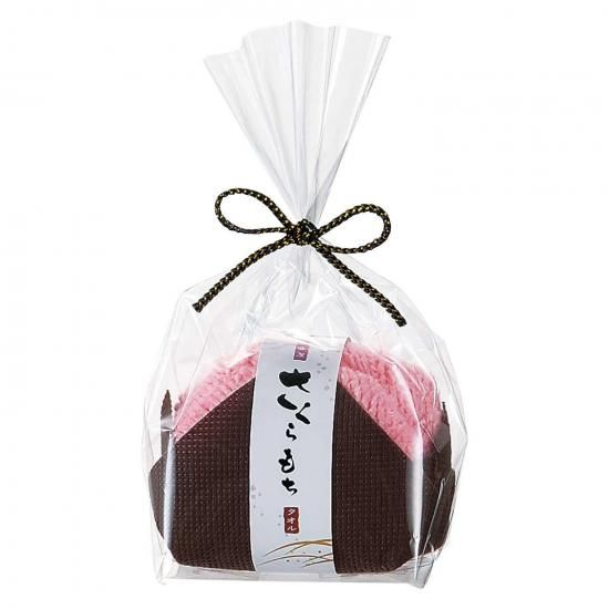 ふんわり質感のハンカチタオルを使った和菓子のように見えるこだわりのアイデア商品。