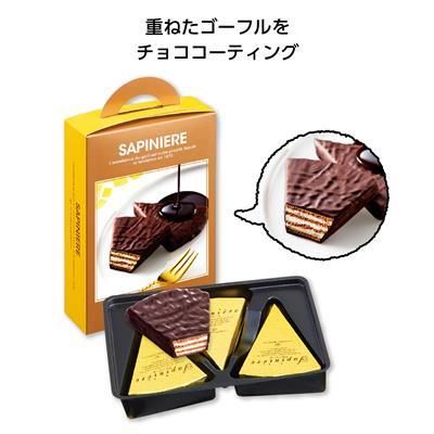 ゴーフル(バニラ)を重ねてスイートチョコレート でコーティングしたサクッとした口当たりで人気 のお菓子です。