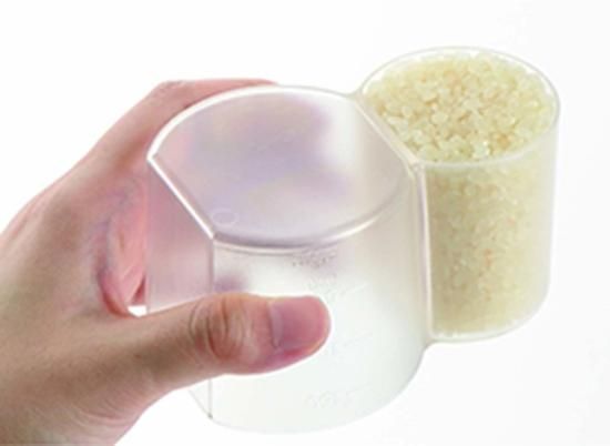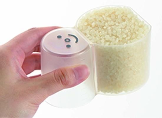 内容:0.5合と1合をくっつけたら、ゆきだるまになりました。雑穀米やもち米を加えて炊く際の量の調整にも便利です。普通米・無洗米の目盛付。通常の計量カップとしても使えるmlの目盛付。