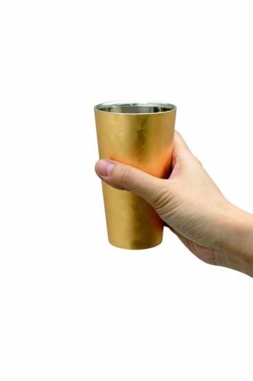 内容:熟練された「職人の磨きの技」が、ビールや炭酸飲料の旨味を引き出します。日本が誇る数多くの匠の技の中から、ものづくりの融合を目指し、新潟県「燕市の研磨技術」×石川県「金沢箔&拭き漆」×福井県「越前和紙」をコラボレーションした逸品です。内側は螺旋状に磨き上げ、ビールを注ぐとクリーミーに泡立ちます。外側は金沢箔で加飾し、トップコートに拭き漆仕上げを行っており、金沢箔の優美さを極限まで引き出した、高級感漂う仕上がりになっています。