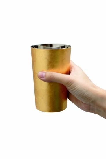 内容:熟練された「職人の磨きの技」が、ビールや炭酸飲料の旨味を引き出します。日本が誇る数多くの匠の技の中から、ものづくりの融合を目指し、新潟県「燕市の研磨技術」×石川県「金沢箔&拭き漆」×福井県「越前和紙」をコラボレーションした逸品です。内側は螺旋状に磨き上げ、ビールを注ぐとクリーミーに泡立ちます。外側は金沢箔で加飾し、トップコートに拭き漆仕上げを行っており、金沢箔の優美さを極限まで引き出した、高級感漂う仕上がりになっています。