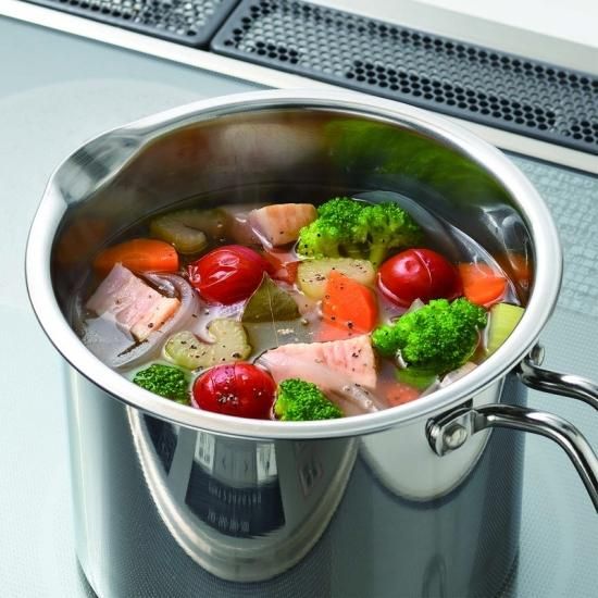 内容:煮る、沸かす、茹でる、炊く、和える、日常使いに便利。軽くて扱いやすい、シンプルなデザイン。サビにくく、お手入れしやすいステンレス製。しっかり握れるハンドル。フタをしたままOK注ぎ口付き。