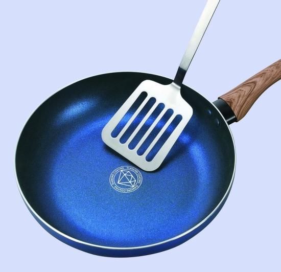 材質:表面加工/内面:ダイヤモンド微粒子配合ふっ素樹脂加工、本体/アルミニウム合金(底の厚さ2.3mm)、はり底/18-0ステンレス鋼、取手/フェノール樹脂(木目調転写)