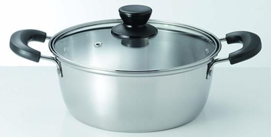 内容:軽くて扱いやすい、シンプルなデザイン。サビにくく、お手入れしやすいステンレス製。調理中の中の様子が見えて安心なガラス蓋。