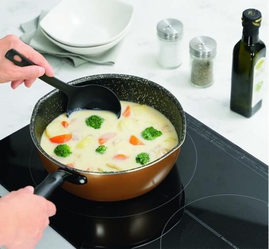 内容:深型だから、フライパンにもお鍋にも!茹でる・焼く・煮る・炒めるがこれひとつ!そそぎやすい両口つき。
