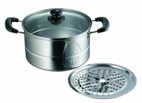 材質:本体/ステンレス鋼(クロム18%)(底の厚さ:0.5mm)、目皿/ステンレス鋼(クロム18%)、取手・つまみ/フェノール樹脂、フタ/全面物理強化ガラス