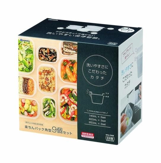 内容:冷蔵庫からそのまま電子レンジへふたをしたまま加熱OK。洗いやすく、スタッキングできコンパクトにまとまり収納可能。