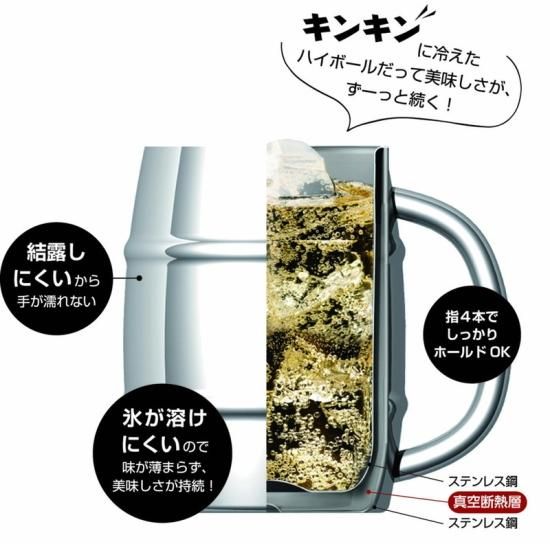 内容:家でも外でもごくごく飲みたくなる!缶でも直でもカンパイをもっと×2楽しもう!500ml缶がジャストフィット!もちろん直接飲み物を入れてもOK!キンキンに冷えたハイボールだって美味しさがずーっと続く!飲み頃温度をキープ真空二重構造!フルオープン缶にも対応!