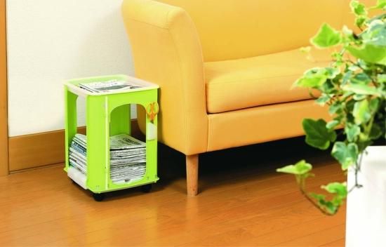 読みかけの新聞やチラシなどを置ける便利なトレー付き。ひも通し棒付きで梱包もラクラク。お掃除や移動が楽なキャスター付。ハサミなどの手軽で便利な小物入れ付。