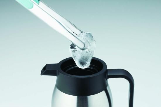 真空二重構造で、氷を入れても結露しない。熱湯を入れても外側が熱くならない。