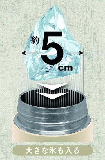 内容:真空構造でおいしい飲み頃長持ち!大きな氷ラクラクも入る大口径。熱い飲み物飛び出し防止、氷が止まる、氷ストッパー付。