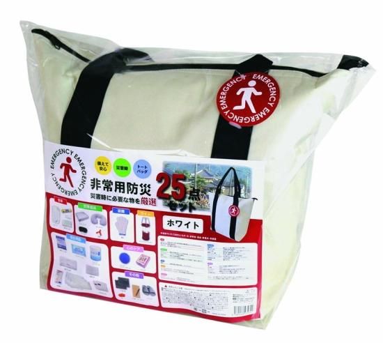 内容:災害時に必要な物を厳選!もしもの備えに安心な25点セット。サッと肩にかけれて女性・お子様でも安心。保冷保温トートバッグ!