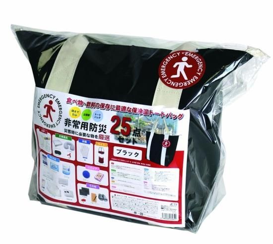 内容:災害時に必要な物を厳選!もしもの備えに安心な25点セット。サッと肩にかけれて女性・お子様でも安心。保冷保温トートバッグ!