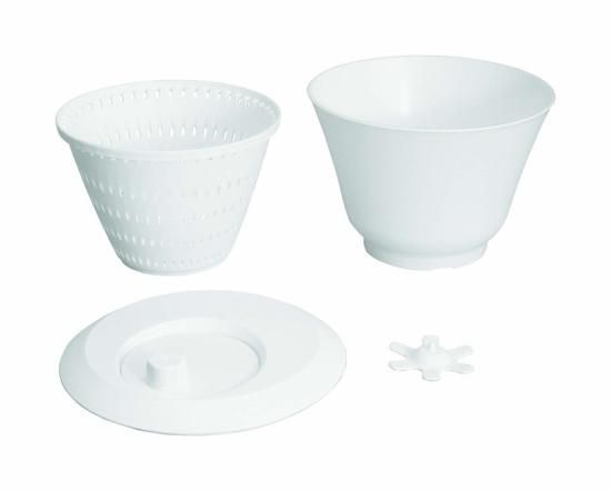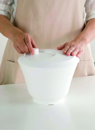 内容:回転軸を非固定式にしたことでザルを入れてすぐに回転が出来るようになりました。軸を取り出すと容器を洗う際にも楽に洗えて衛生的です。