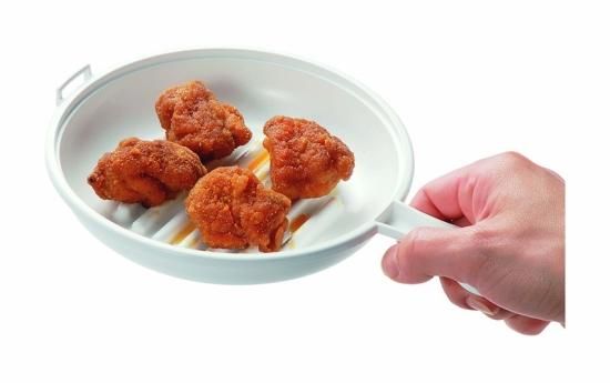 内容:レンジで簡単、ヘルシーから揚げ!味付けもしやすい。波形底で余分な油が落ちるし、肉まんや野菜を蒸すにも便利!
