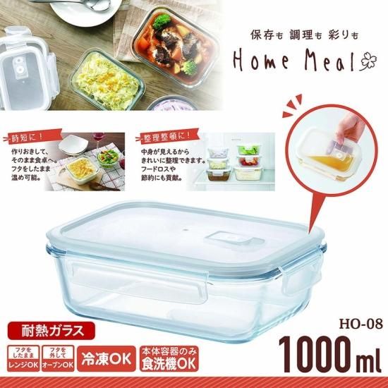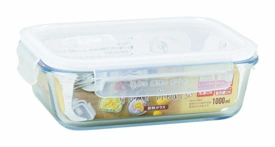 HO-08HomeMeal-ホームミール-耐熱ガラス保存容器蒸気弁付き長方形1000ml