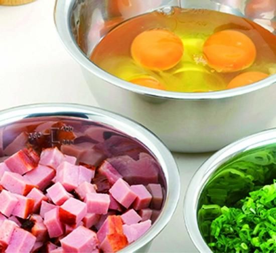 内容:賢く使ってスムーズ調理!便利な目盛り付き!深めの曲線で混ぜやすい!小分けしてスピードクッキング!スタッキングしてスッキリ収納!
