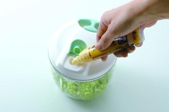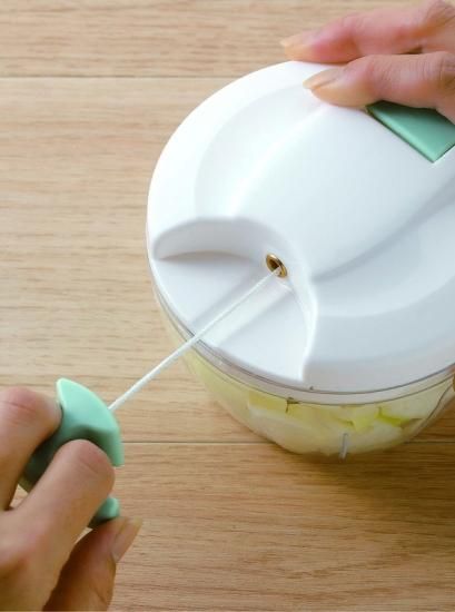 まな板から飛び出てしまったり、手にニオイがついてしまったりと、煩わしさのあるみじん切りが、食材を中に入れて数回引っぱるだけ、あっという間に完成!