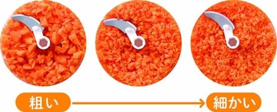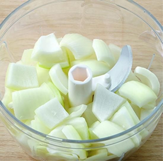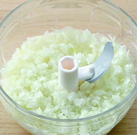 まな板から飛び出てしまったり、手にニオイがついてしまったりと、煩わしさのあるみじん切りが、食材を中に入れて数回引っぱるだけ、あっという間に完成!