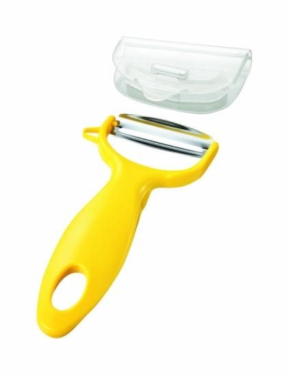 内容:ラクラク斜め刃で野菜の皮がスムーズにむける。むいた皮がくっつきにくい。鋭角な刃先の斜め刃で軽い力で皮がむける。刃の上部に返しが付いているので、むいた野菜の皮が離れやすい。ごぼうの皮むきができる。安全に収納できるカバー付き。