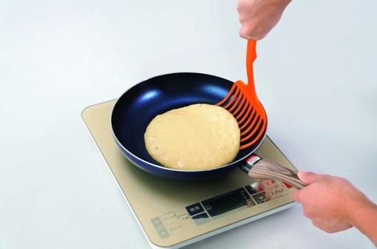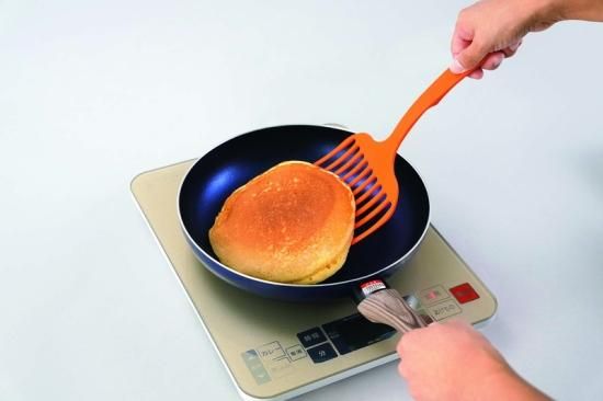 内容:しなるワイドターナーのハンドルを長くして、調理中の熱を感じにくくしました。しなる部分を少し肉厚にしたので、快適にしなりつつ、ハンバーグなど少し重いものをすくって返したり盛り付けたりできます。