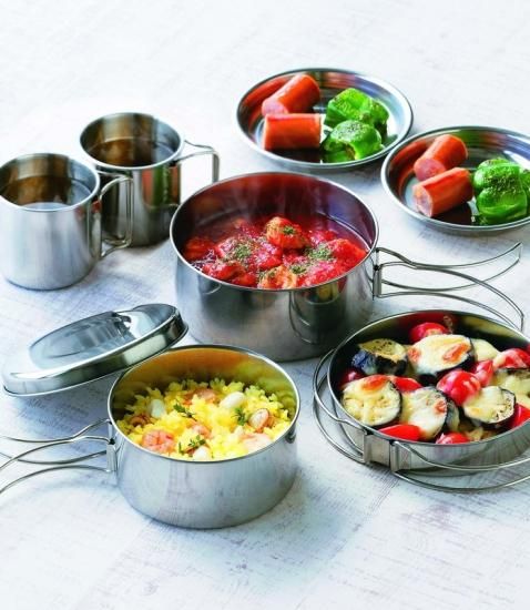 内容:楽しもう!アウトドアパーティ もしもの時の防災サポートにも!アウトドアや非常時に使える調理道具をセットにし、持ち運びに便利な袋に収めました。鍋はコンパクトに収納できます。