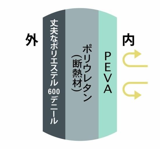 材質:ポリエステル(600デニール)、PEVA、ポリウレタン