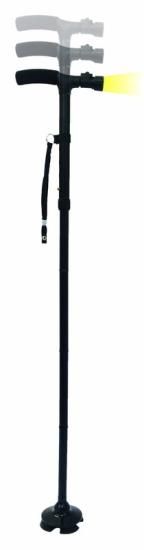 内容:折りたたみ式で軽量。5段階の長さ調節が可能。LEDライトで安心。4脚タイプの回転軸ヘッド。手を離しても倒れない自立式。